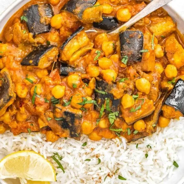 Eggplant Curry Ingredients For Roasting the Eggplant: 2 medium eggplants (about 1¼ lb / 560g), cut into 1-inch cubes 1½ tbsp olive oil ½ tsp salt ¼ tsp black pepper For the Curry Base: 1 tbsp olive oil 1 medium onion, chopped 2 cloves garlic, grated 1 inch ginger,...