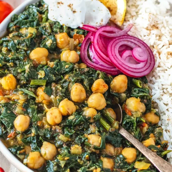Chana Saag A wholesome and comforting dish made with tender chickpeas, warming spices, and nutrient-rich spinach. Perfect with rice or flatbread, and easy to customize to your taste! Ingredients 2 tbsp olive oil 2 medium onions, chopped 3 cloves garlic, grated 1...