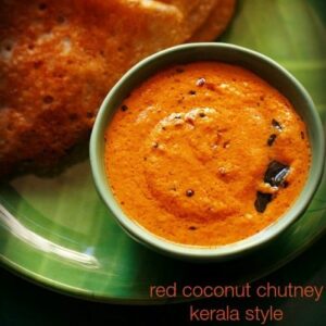 Serve the Kerala style Red Coconut Chutney with idli, dosa, medu vada or uttapam.