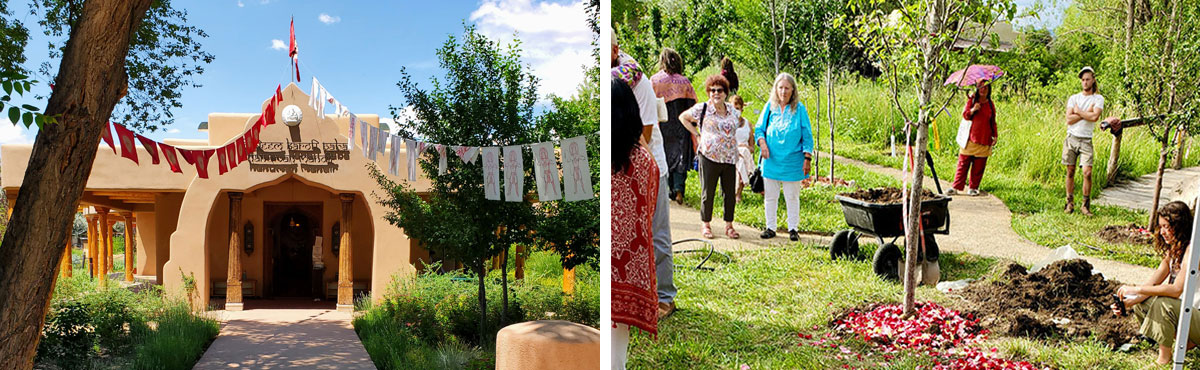 Three years ago, the new Hanuman Mandir opened at the Neem Karoli Ashram in Taos. This formal Hindu Temple built with adobe, fully integrating the southwest feelings of New Mexico, has an annual event called Guru Purnima which honors the relationship between Neem Karoli Baba and his followers.