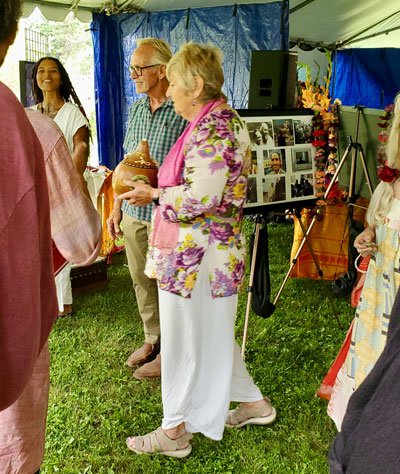 Five months later, Ram Dass passed at his home in Maui. Ram Dass’ ashes were saved for this event. Ram Dass had been president of the Hanuman Temple and Neem Karoli Baba Ashram for many years. The Board wanted to plant a tree for Ram Dass and inter some of his ashes on the property, but Covid in 2020 and 2021 made Dassima’s travel from Hawaii next to impossible. Many others from around the country who might want to be there had the same problem.