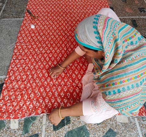 Each blanket is lovingly hand-stitched and made with either new, beautifully patterned cotton, or pre-loved saris. Colors and patterns vary, and each blanket is made to order. Hand wash and hang to dry.