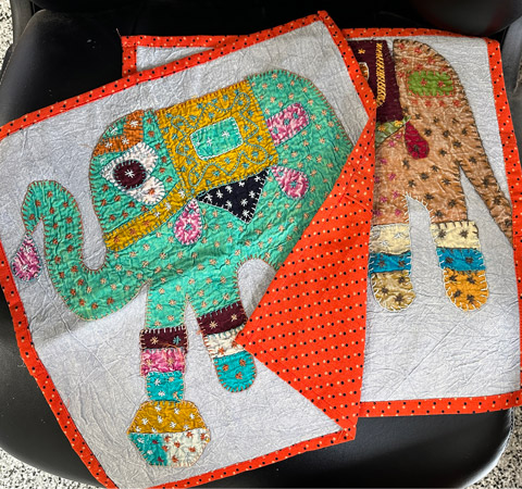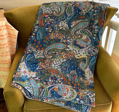 Baba’s Feed Project is proud to offer handmade Kantha blankets each lovingly designed and handmade by Annu, Pintu’s wife. We currently have 9 new blankets to offer you, all full/queen size. And we still have 2 elephant pillowcases in stock, so first buyer of an elephant blanket gets this $40 value free!
