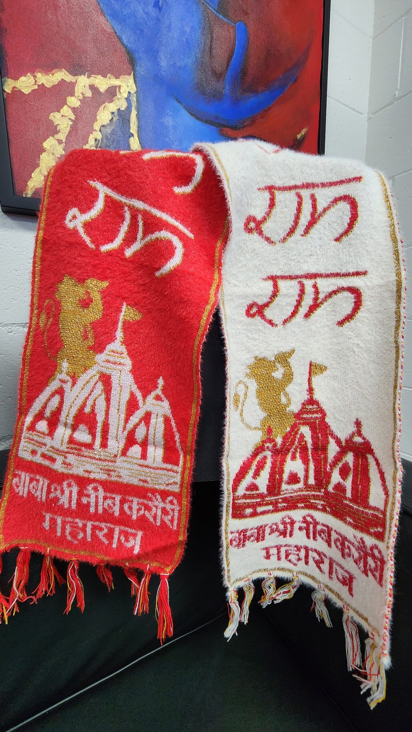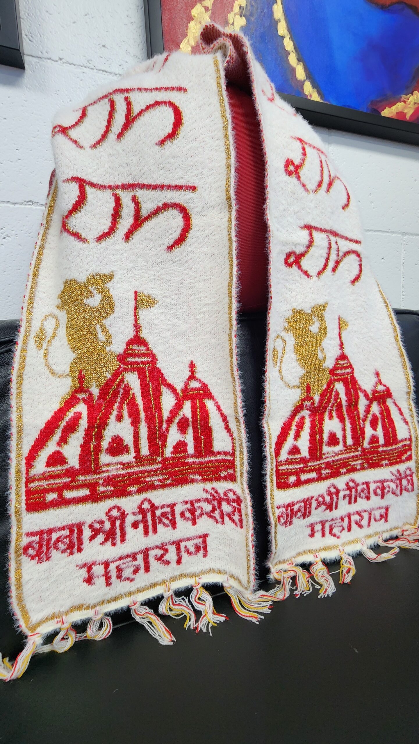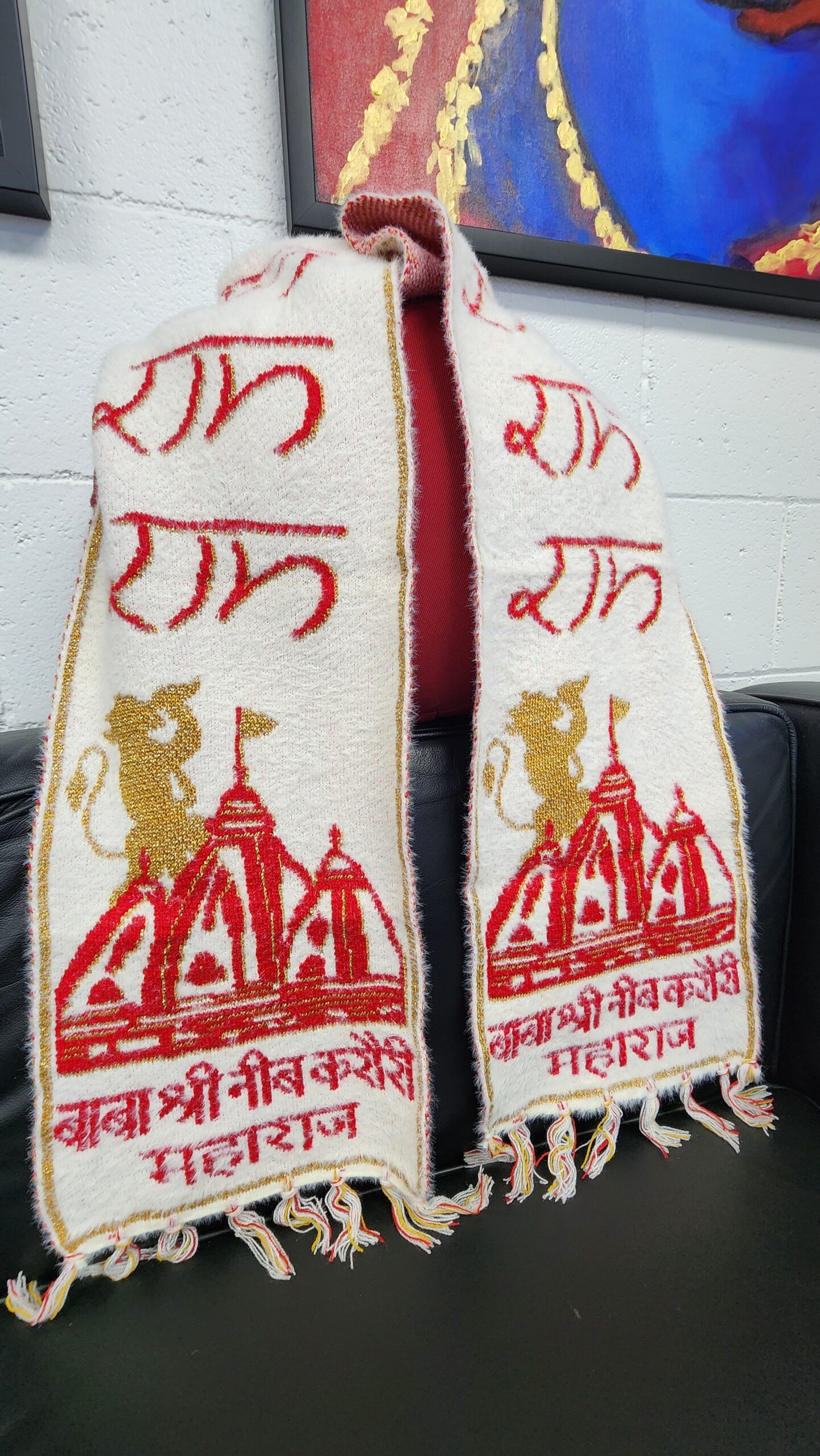 Lightweight and handcrafted, this scarf features Ram Ram script and imagery of Kainchi Dham, one of the most sacred places associated with Maharajji. Infused with ittra/attar, it offers a gentle scent reminiscent of India’s spiritual essence. Each piece is made in small batches by artisans continuing the devotional tradition of service and mindfulness.