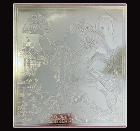 This colorful Hanuman is 8″ x 11″ and printed in relief on metallic paper. Sweet additional to a puja table!
