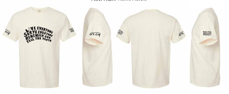 Printed in bold black ink, each shirt is a wearable reminder of compassion and seva.
